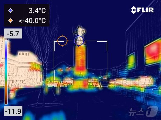 (서울=뉴스1) 김진환 기자 = 절기상 대한(大寒)인 20일 오전 서울 광화문광장이 한산한 모습을 보이고 있다. 열화상카메라는 온도가 높을수록 붉은색으로 나타나며 상대적으로 온도가 낮은 곳은 푸른색으로 나타난다. (열화상카메라 촬영) 2026.1.20/뉴스1