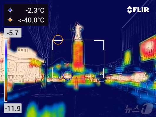 (서울=뉴스1) 김진환 기자 = 절기상 대한(大寒)인 20일 오전 서울 광화문광장이 한산한 모습을 보이고 있다. 열화상카메라는 온도가 높을수록 붉은색으로 나타나며 상대적으로 온도가 낮은 곳은 푸른색으로 나타난다. (열화상카메라 촬영) 2026.1.20/뉴스1