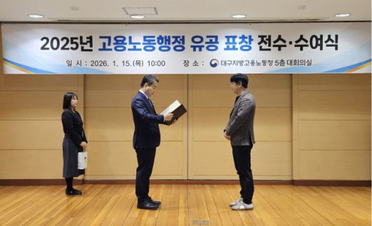 한편 시상은 지난 15일 대구지방고용노동청 5층 대회의실에서 열린 '2025년 고용노동행정 유공 표창 전수·수여식'에서 이뤄졌다.