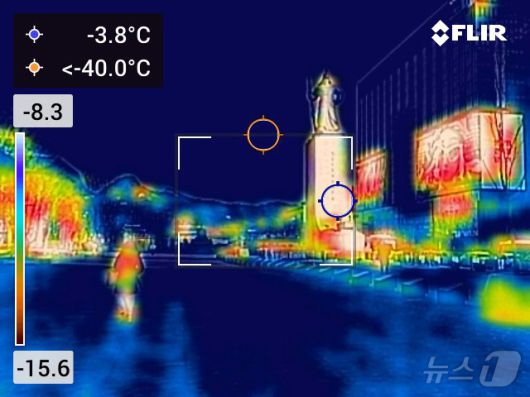 (서울=뉴스1) 김진환 기자 = 절기상 대한(大寒)인 20일 오전 서울 광화문광장이 한산한 모습을 보이고 있다. 열화상카메라는 온도가 높을수록 붉은색으로 나타나며 상대적으로 온도가 낮은 곳은 푸른색으로 나타난다. (열화상카메라 촬영) 2026.1.20/뉴스1