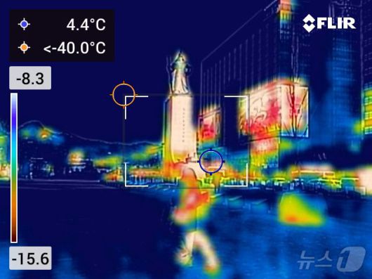(서울=뉴스1) 김진환 기자 = 절기상 대한(大寒)인 20일 오전 서울 광화문광장이 한산한 모습을 보이고 있다. 열화상카메라는 온도가 높을수록 붉은색으로 나타나며 상대적으로 온도가 낮은 곳은 푸른색으로 나타난다. (열화상 카메라 촬영) 2026.1.20/뉴스1