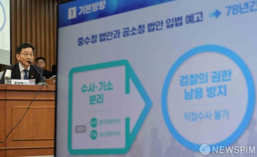 [서울=뉴스핌] 윤창빈 기자 = 윤창렬 국무조정실장이 20일 서울 여의도 국회에서 열린 정책의원총회 겸 공소청법-중대범죄수사청법 공청회에서 정부안 설명을 하고 있다. 2026.01.20 pangbin@newspim.com