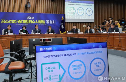 [서울=뉴스핌] 윤창빈 기자 = 윤창렬 국무조정실장이 20일 서울 여의도 국회에서 열린 정책의원총회 겸 공소청법-중대범죄수사청법 공청회에서 정부안 설명을 하고 있다. 2026.01.20 pangbin@newspim.com