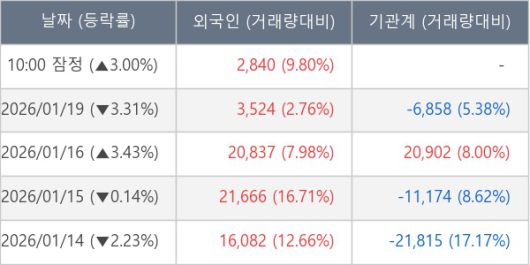 [표] 외국인ㆍ기관 순매매량 (단위 주)