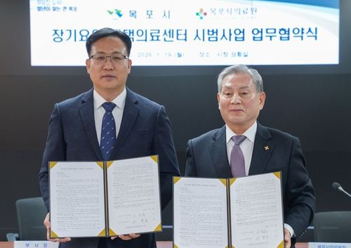 (목포=연합뉴스) 조근영 기자 = 전남 목포시는 목포시의료원과 보건복지부 '장기요양 재택의료센터 시범사업' 추진 업무협약을 체결했다고 20일 밝혔다.