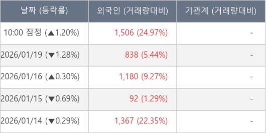 [표] 외국인ㆍ기관 순매매량 (단위 주)