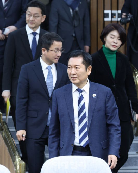 [이데일리 노진환 기자] 정청래 더불어민주당 대표와 한병도 원내대표, 한정애 정책위의장 등이 20일 서울 여의도 국회에서 열린 공소청법·중대범죄수사청법 공청회에 참석하고 있다.