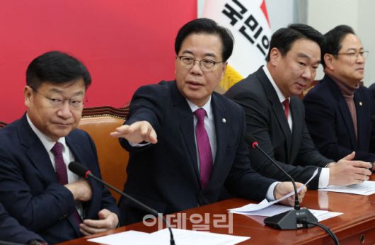 송언석 국민의힘 원내대표가 20일 서울 여의도 국회에서 열린 원내대책회의를 주재하고 있다.(사진=이데일리DB) |