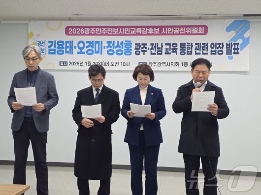 후보들은 "수도권 일극체제 극복을 위한 행정통합의 대의에는 적극 공감하나 속도전으로 밀어붙이는 졸속 교육통합에는 단호히 반대한다"며 "광주와 전남은 교육 여건과 과제가 현격히 달라 하나의 틀로 묶으면 심각한 혼란이 초래될 수 있다"고 밝혔다.