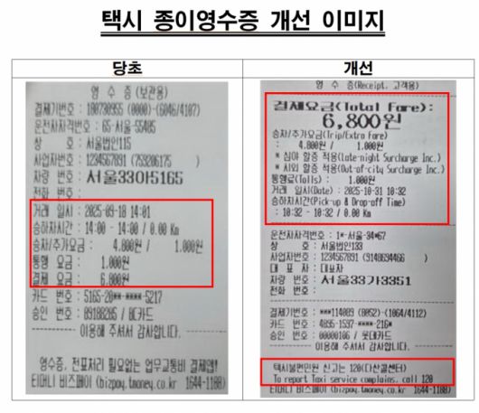 택시영수증 개선 전후 이미지/사진제공=서울시 |
