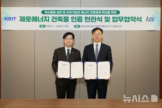 [세종=뉴시스]김동현 기자 = 한국건설생활환경시험연구원(KCL)은 지난 19일 대구에 위치한 한국산업기술기획평가원(산기평) 본원에서 기후위기의 성장 기회 전환과 제로에너지건축물(ZEB) 확산을 위한 업무협약을 체결했다고 20일 밝혔다.