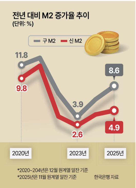 일각에서는 한은이 올해 새 M2 지표를 도입한 것도 통화량을 적어 보이게 하기 위한 ‘꼼수’라고 의심한다. 하지만 한은에서는 IMF(국제통화기금) 개정 매뉴얼에 따라 가치 저장 기능이 낮은 수익증권을 배제한 것이라는 입장이다.