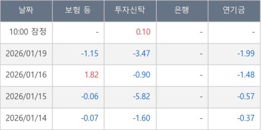 [표] 주요 기관별 순매매량 (단위 만주)