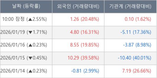[표] 외국인ㆍ기관 순매매량 (단위 만주)