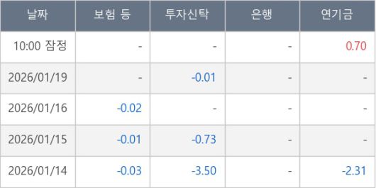 [표] 주요 기관별 순매매량 (단위 만주)