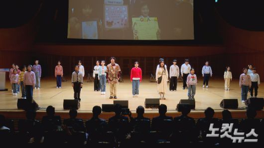 지난 14일 서울 롯데콘서트홀에서 진행된 'mom편한 꿈다락 100호점 개관 기념식'에서 지역아동센터 어린이들이 뮤지컬 공연을 선보이고 있다. 자료사진 |