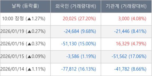 ※ 사모펀드 등 일부 기관의 순매매량은 표시되지 않음