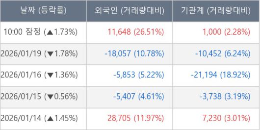 ※ 사모펀드 등 일부 기관의 순매매량은 표시되지 않음