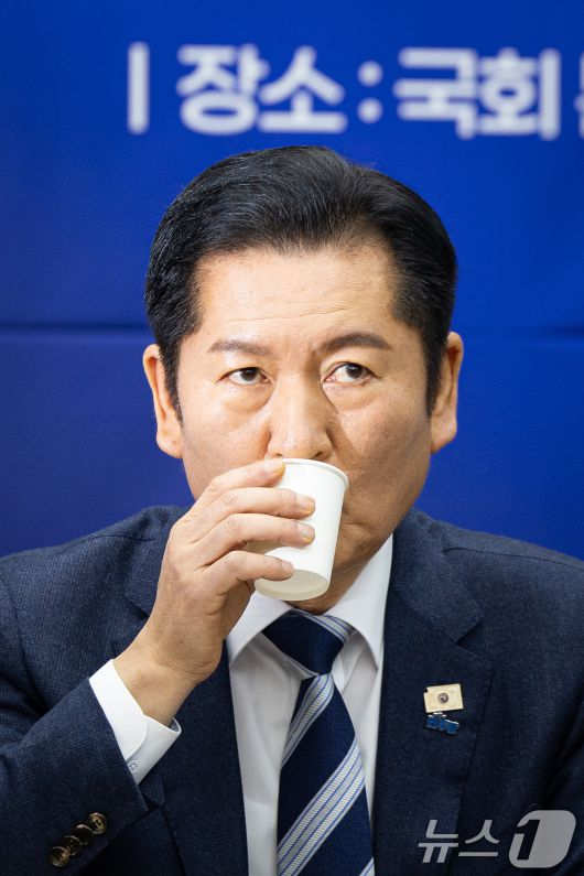 (서울=뉴스1) 유승관 기자 = 정청래 더불어민주당 대표가 20일 서울 여의도 국회에서 열린 공소청법·중대수사청법 공청회(정책의원총회)에서 물을 마시고 있다. 2026.1.20/뉴스1