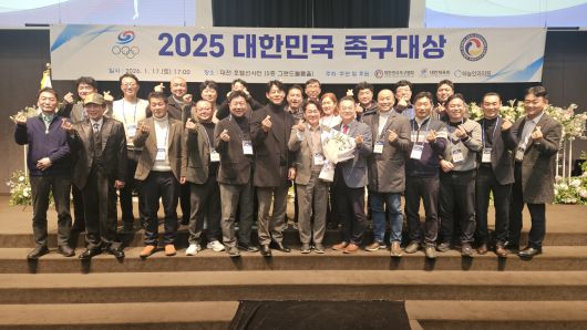 [헤럴드경제=조용직 기자] 대한체육회 산하 사단법인 대한민국족구협회(회장 이대재)는 족구 발전에 기여한 개인과 단체를 격려하는 ‘2025 대한민국 족구대상’을 지난 17일 대전 호텔선샤인에서 열었다고 20일 밝혔다.