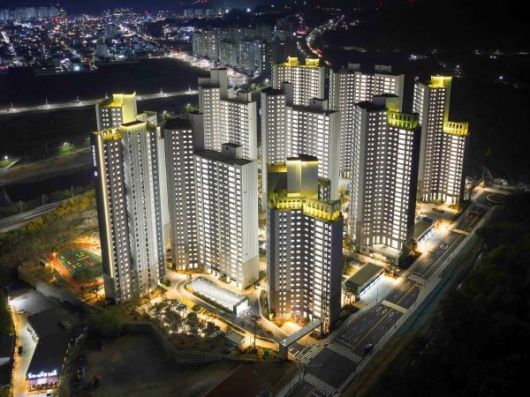 광양 푸르지오 센터파크 점등식 모습(드론 촬영). 사진ㅣ대우건설 |