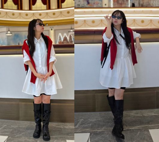 공개된 사진 속 홍현희는 화이트 셔츠 원피스에 무릎까지 올라오는 블랙 부츠, 어깨에 레드 니트를 걸친 감각적인 스타일링으로 시선을 사로잡았다. 여기에 선글라스를 더해 시크한 분위기를 완성했다. 특히 최근 10kg 감량에 성공한 만큼 턱살이 거의 보이지 않는 또렷한 턱선이 눈길을 끌었다. 한눈에 봐도 이전보다 슬림해진 체형 역시 다이어트 효과를 실감케 하며 놀라움을 안겼다.