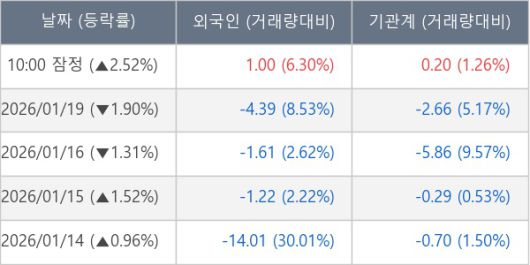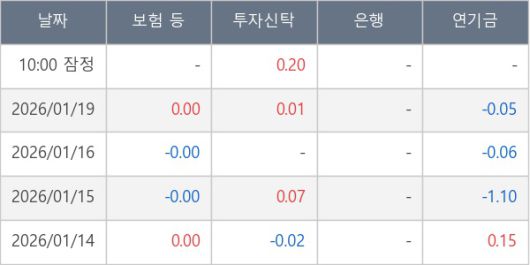 [표] 주요 기관별 순매매량 (단위 만주)