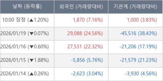 ※ 사모펀드 등 일부 기관의 순매매량은 표시되지 않음