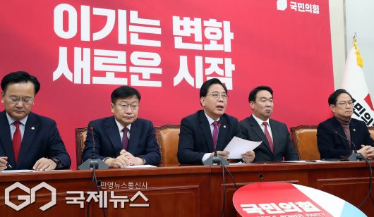 (서울=국제뉴스) 송언석 국민의힘 원내대표가 20일 오전 서울 여의도 국회에서 열린 원내대책회의에서 발언을 하고 있다./사진=이용우 기자