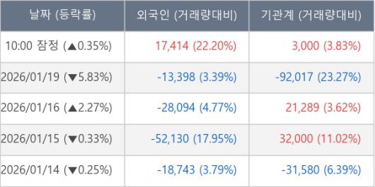 ※ 사모펀드 등 일부 기관의 순매매량은 표시되지 않음