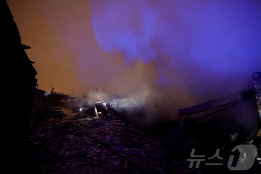 (서울=뉴스1) 이정환 기자 = 러시아군이 20일(현지시간) 우크라이나 수도 키이우에 드론과 미사일 공격을 가해 전기와 용수 공급이 중단됐다.
