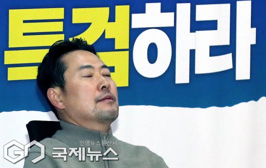 (서울=국제뉴스) 통일교·공천헌금 '쌍특검'을 요구하며 엿새째 단식농성중인 장동혁 국민의힘 대표가 20일 오전 서울 여의도 국회 로텐더홀에서 농성을 이어가고 있다./사진=이용우 기자