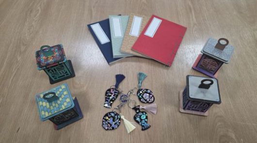 전통 책 만들기, 전통 등 만들기, 분청사기 자개 키링 만들기 체험 작품. 고흥군 제공 |