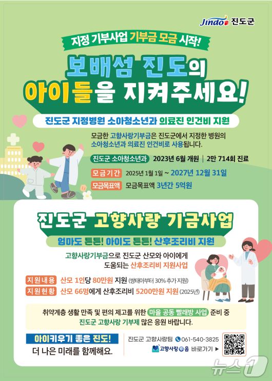 또 지정병원 소아청소년과 의료진 인건비 지원을 위해 지난해부터 지정기부 사업으로 모금 중인 '보배섬 진도의 아이들을 지켜주세요' 목표 달성을 위해 적극적인 홍보와 참여 확대에 나서고 있다.
