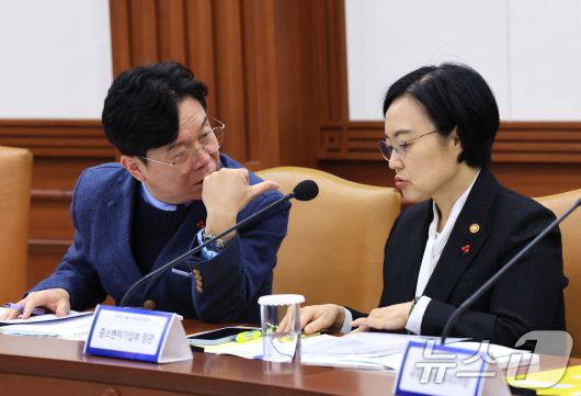 김영훈 고용노동부 장관(왼쪽)과 한성숙 중소벤처기업부 장관. 2025.12.18/뉴스1 ⓒ News1 임세영 기자 |