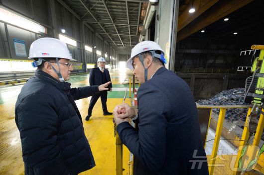 김성환 기후에너지환경부 장관이 경기 안산 소재 생활폐기물 중계처리시설을 찾아 2026년 1월 1일 수도권 생활폐기물 직매립금지 시행 대비 처리계획을 점검하고 관련 시설을 살펴보고 있다. (기후에너지환경부 제공. 재판매 및 DB 금지) 2025.12.29/뉴스1 |