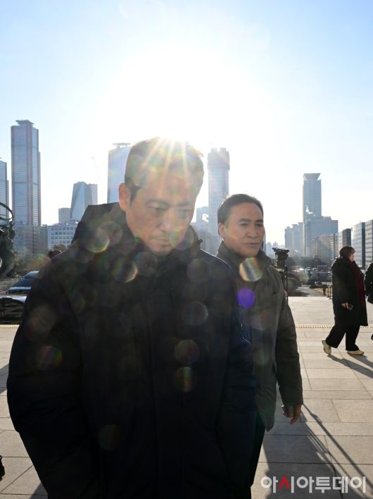 아시아투데이 이병화 기자 = '통일교 게이트 특검·민주당 공천뇌물 특검' 수용을 촉구하며 6일째 단식을 이어가고 있는 장동혁 국민의힘 대표가 20일 국회 본청 외부에서 산책을 마치고 다시 농성장으로 향하고 있다.