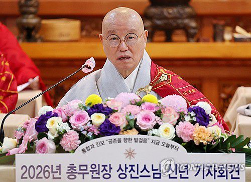 상진스님은 서울 종로구 한국불교전통문화전승관에서 열린 신년 기자회견에서 올해 주요 종책 과제를 설명하며 "우리 사회가 반목과 퇴보가 아닌 통합과 진보의 시대로 나아가도록 일조하겠다"고 말했다.