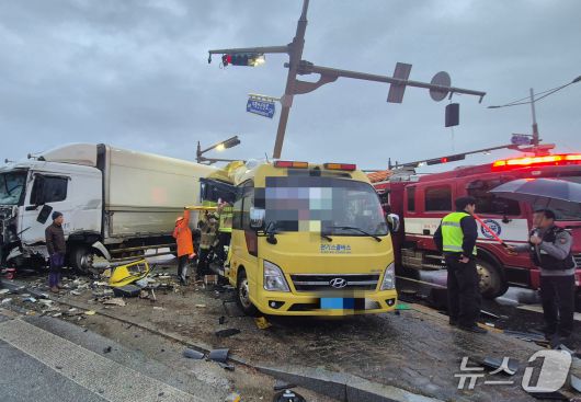 (김제=뉴스1) 장수인 기자 = 신호 위반 사고를 내 초등학생 등 13명을 다치게 한 화물차 운전자가 구속됐다.