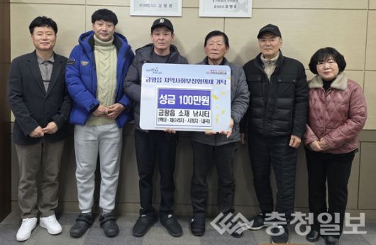 충북 음성군 금왕읍 소재 낚시터 대표(백야·제수리지·사계지·내곡낚시터)들이 지역사회의 어려운 이웃을 위해 금왕읍행정복지센터에 이웃돕기 성금 100만원을 기탁했다고 20일 밝혔다. /음성=김록현기자