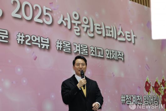 [서울=뉴스핌] 양윤모 기자 = 오세훈 서울시장이 20일 '2025 서울윈터페스타'의 운영 성과를 공유하기 위한 간담회 '수고했어, 2025 서울윈터페스타'에서 참석해 인사말을 하고 있다.이날 행사에는 오세훈 서울시장을 비롯해 윈터페스타에 참여한 기관 관계자, 축제 감독, 행사 참여 시민 등 50여명이 참석했다. 2026.01.20 yym58@newspim.com