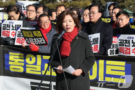 (서울=뉴스1) 이광호 기자 = 나경원 국민의힘 의원이 20일 오전 서울 중로구 청와대 분수대 앞에서 열린 통일교 게이트 및 더불어민주당 공천뇌물 특검 촉구 규탄대회에서 규탄사를 하고 있다. 2026.1.20/뉴스1skitsch@news1.krCopyright ⓒ 뉴스1. All rights reserved. 무단 전재 및 재배포, AI학습 이용 금지.
