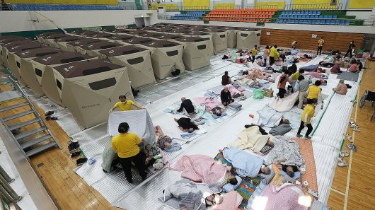 지난해 3월 경북 의성군 대형 산불 발생 후 의성체육관에 마련된 대피소 모습[연합] |