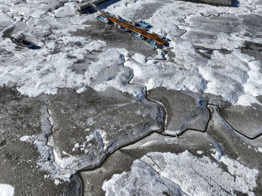 절기상 대한(大寒)이자 서울 아침 최저기온이 영하 13도를 기록하는 등 전국에 한파특보가 내려진 20일 인천 강화군 분오리항 앞바다와 동막해변이 얼어붙어 있다.