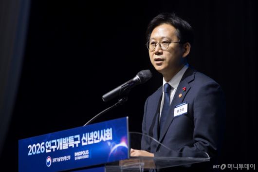 배경훈 부총리 겸 과학기술정보통신부 장관이 19일 오후 대전광역시 유성구 ICC호텔에서 열린 '2026년 연구개발특구 신년인사회' 에 참석해 환영사를 하고 있다. /사진=과학기술정보통신부 제공 |
