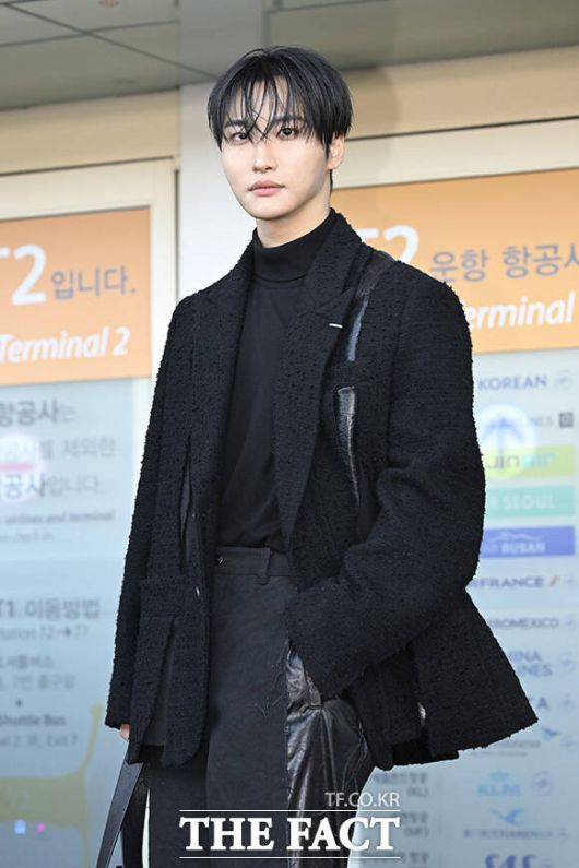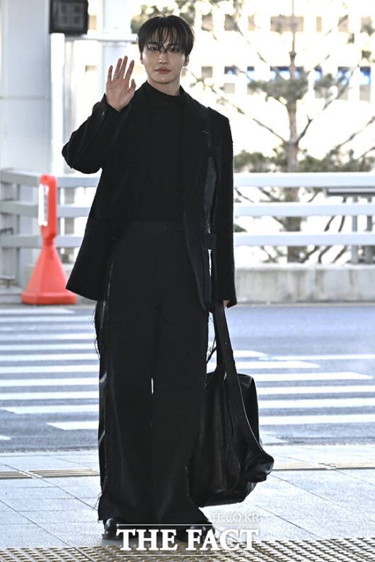그룹 에이티즈 성화가 해외 일정 참석 차 20일 오전 인천국제공항을 통해 프랑스 파리로 출국하며 포즈를 취하고 있다. /인천국제공항=송호영 기자 |