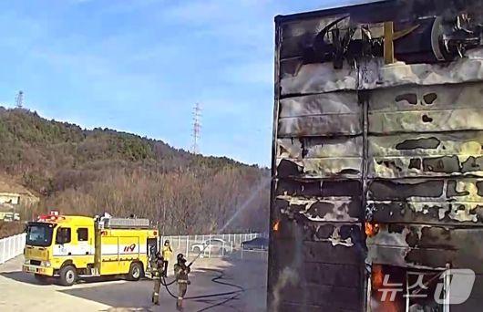 20일 낮 12시28분쯤 경북 구미시 산동읍 성수리 농업용 전기차 제작 공장에서 불이나 소방 당국이 진화하고 있다.(경북소방본부 제공.재판매 및 DB 금지)2026.1.20/뉴스1 |