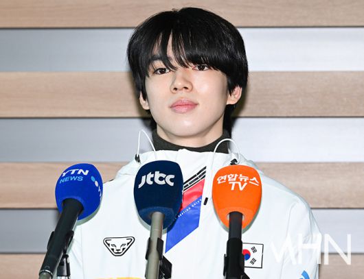 이날 차준환이 출국 전 인터뷰를 하고 있다.