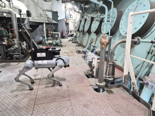 4족 보행 로봇이 선박 내에서 모니터링 업무를 수행하고 있다. 케이조선 제공 |