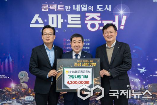 (증평=국제뉴스) 이재기 기자 = NH농협 증평군지부(지부장 연제문)는 20일 증평 발전을 도모하고 고향사랑기부제 확산에 힘을 보태기 위해 증평군에 고향사랑기부금 420만원을 기탁했다고 밝혔다.